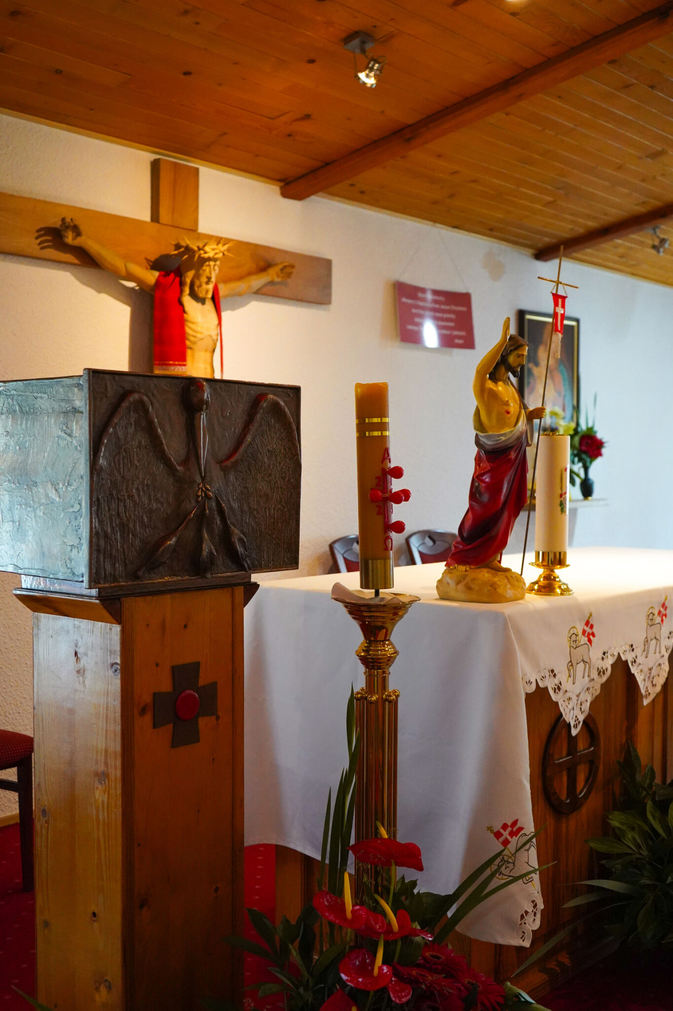 Pięk­na, sprzy­ja­ją­ca modli­twie i wyci­sze­niu kapli­ca z Naj­święt­szym Sakra­men­tem dostęp­na dla gości przez całą dobę; kli­ma­ty­zo­wa­na. Dostęp­na jest tak­że codzien­na Eucha­ry­stia oraz wspól­no­to­we Nie­szpo­ry z Ado­ra­cją Naj­święt­sze­go Sakra­men­tu. Ist­nie­je moż­li­wość spo­wie­dzi czy roz­mo­wy z kapła­nem – Misjo­na­rzem Krwi Chrystusa.