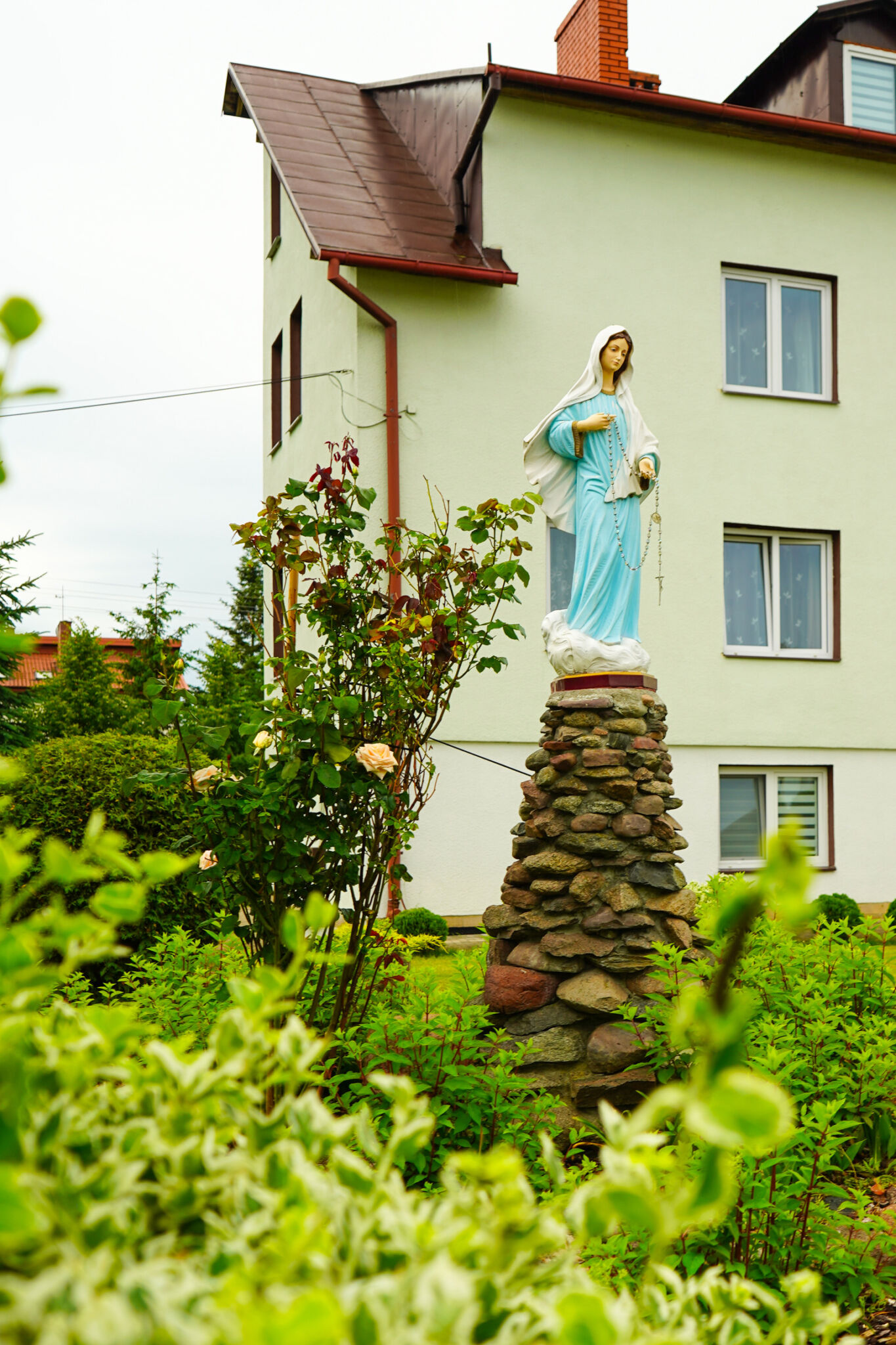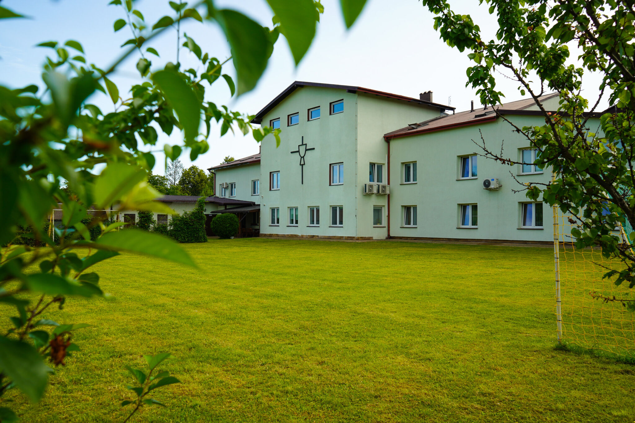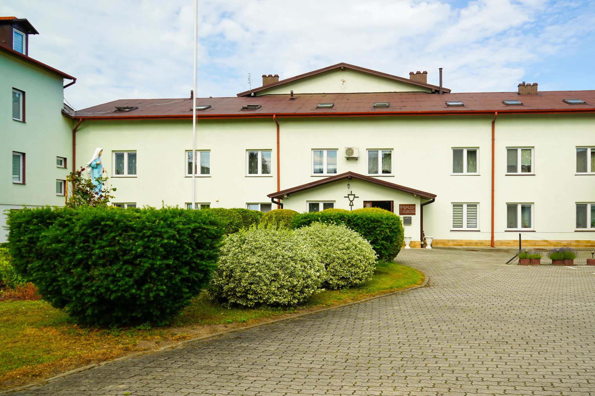 • Na tere­nie Domu znaj­du­je się duży ogród z figu­rą Mat­ki Bożej Kró­lo­wej Poko­ju, figu­ra­mi św. Micha­ła Archa­nio­ła i św. Józe­fa nad oczkiem wod­nym oraz kapli­ca­mi Dro­gi Krwi Chry­stu­sa, a tak­że alta­ną Świę­tych Joachi­ma i Anny, co stwa­rza moż­li­wość spa­ce­rów i wyci­sze­nia, a otwar­te kapli­ce pozwa­la­ją na sku­pie­nie i indy­wi­du­al­ną modlitwę.