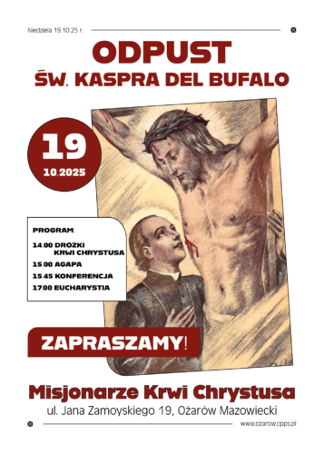 Serdecznie zapraszamy na odpust naszego Założyciela - św. Kaspra del Bufalo, który odbędzie się w trzecią niedzielę października (19.X) 2025 r. w naszym Domu Misyjnym, w Ożarowie Mazowieckim.