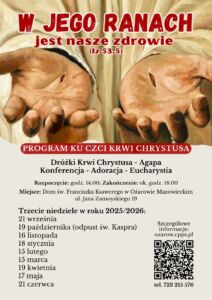 15:30 Konferencja - aktualny temat związany z duchowością Krwi Chrystusa.